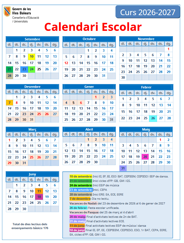 Calendari escolar 2026/27 Apolonia Burguera Vidal31/03/26 Aquí podeu veure el calendari escolar pel proper any.